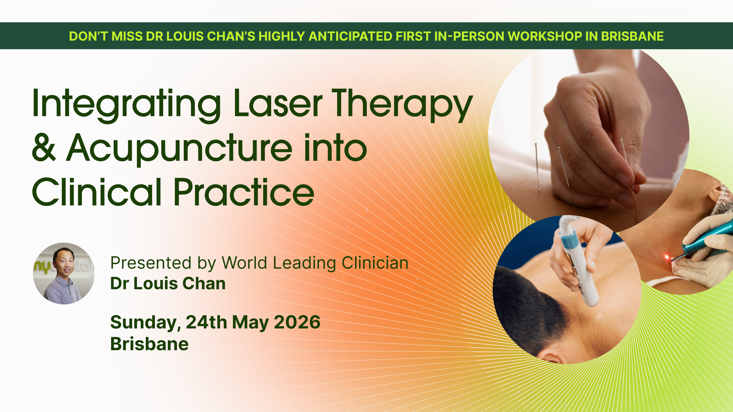 A one-day, high-impact workshop for forward-thinking clinicians ready to integrate Laser Therapy and Acupuncture into a modern, holistic approach to health.